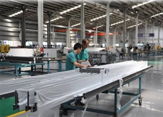 工廠有生產技術管理人員50人,其中技術人員10人,生產管理人員30人,質量管理人員10人,物料及運輸管理人員4人。 工廠有門窗幕墻加工技術工人150人,分為下料車間、鉆銑車間、組裝車間、注膠車間、包裝車間、鋁門窗車間、系統窗車間、檢驗實驗室等。