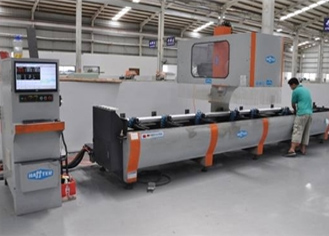 深圳華輝裝飾幕墻門窗加工基地位于東莞清溪鎮,距華輝總部50公里,占地面積4萬多平米,廠房面積3萬平米,其中幕墻廠廠房面積15000平米,有5條幕墻生產線, 門窗廠廠房面積15000平米,有6條門窗生產線,采用進口和國產名牌設備,有4軸高速型材加工中心、數控雙頭切割鋸、數控任意角度切割鋸、角碼切割鋸、 數控銑床、仿形銑床、多頭鉆床、沖壓機、組角機、結構膠注膠機、結構膠養護車間、行車、叉車、貨車等。設備精度高,加工速度快,可年加工構件式幕墻50萬 平米,加工單元式幕墻60萬平米,加工鋁門窗105萬平米。