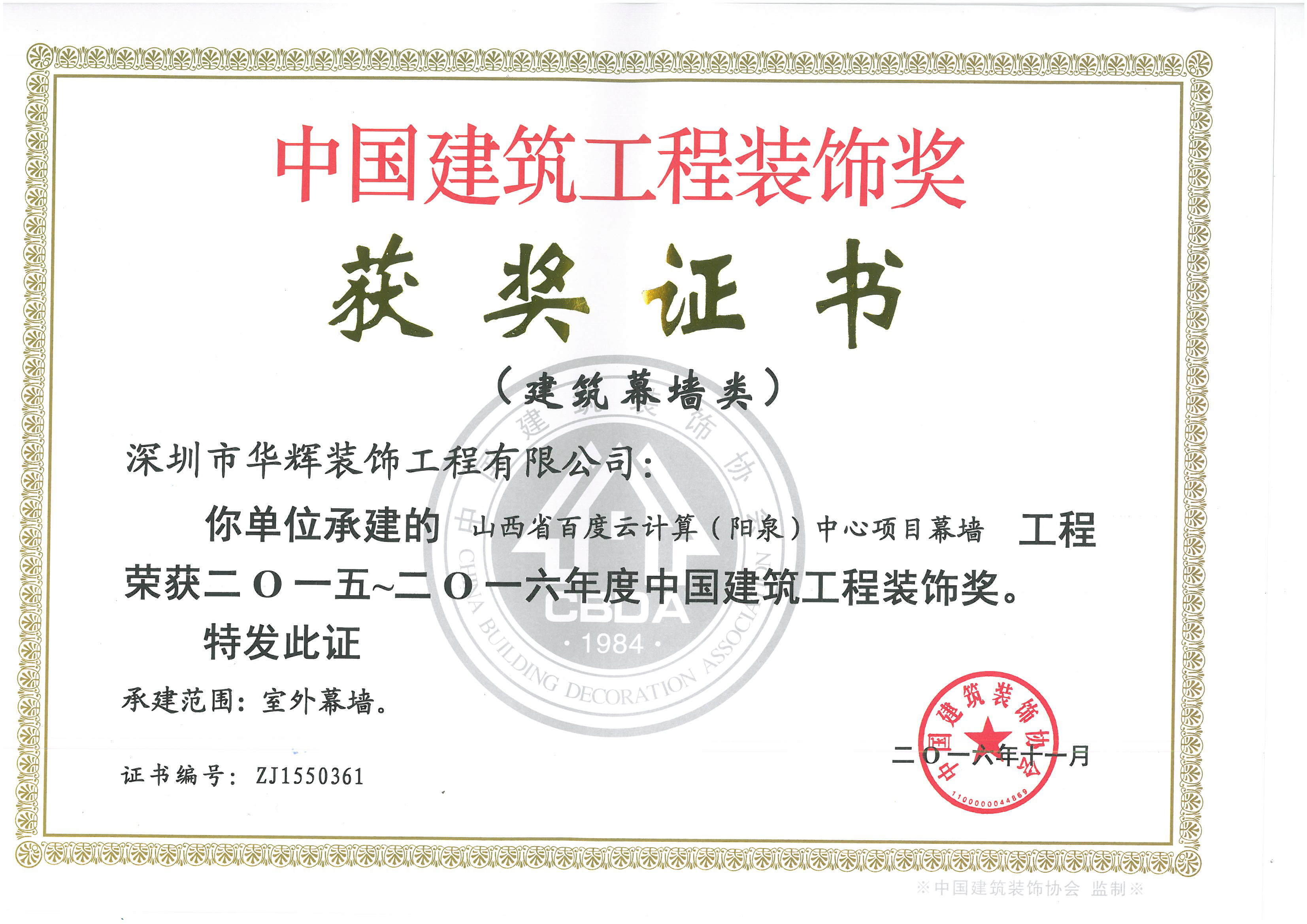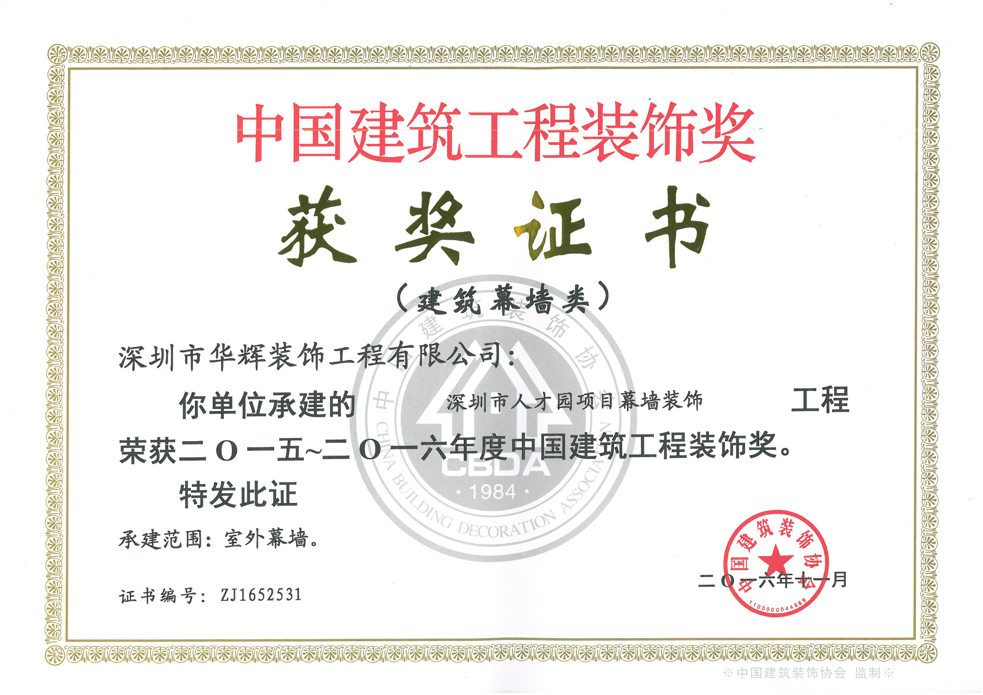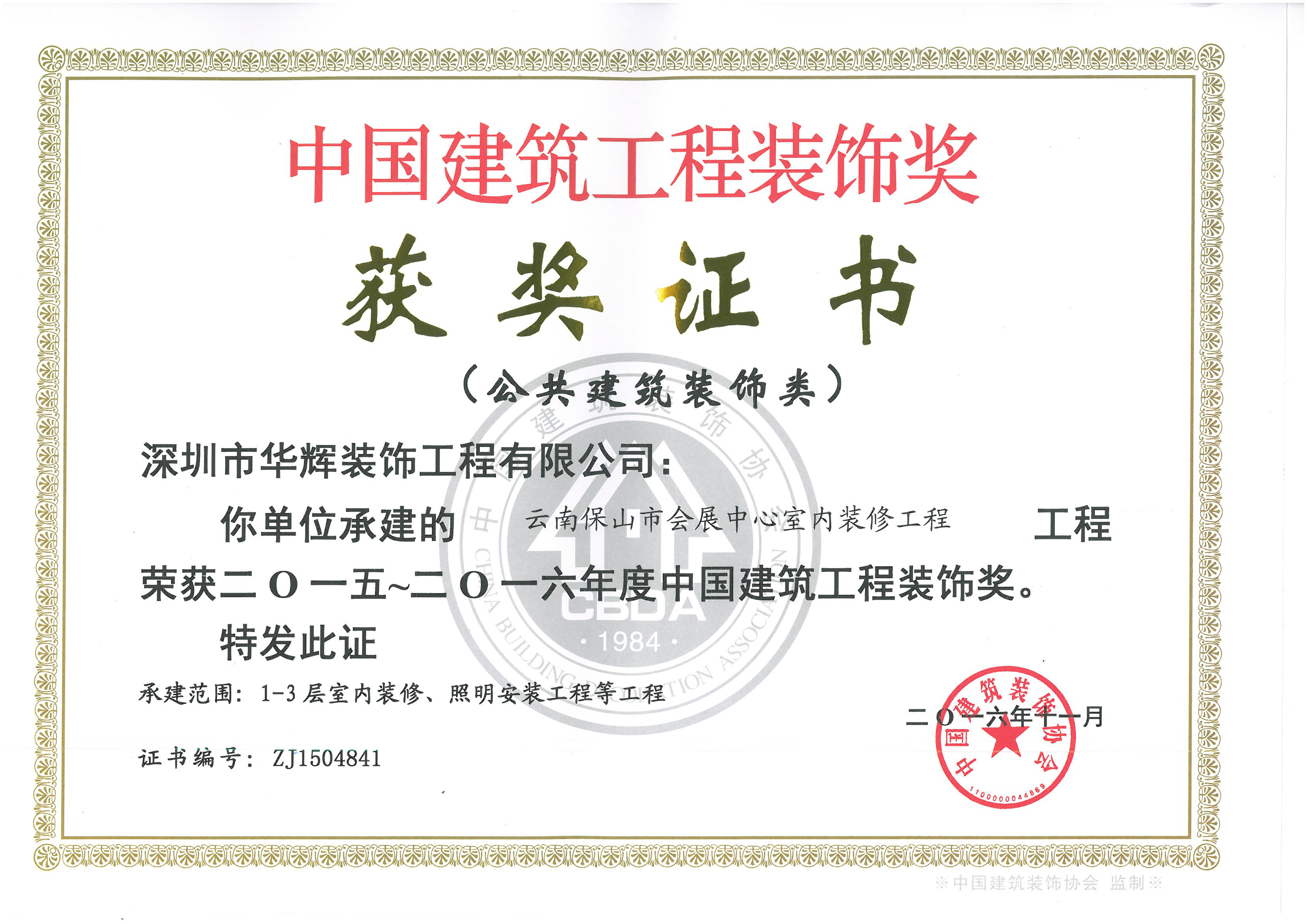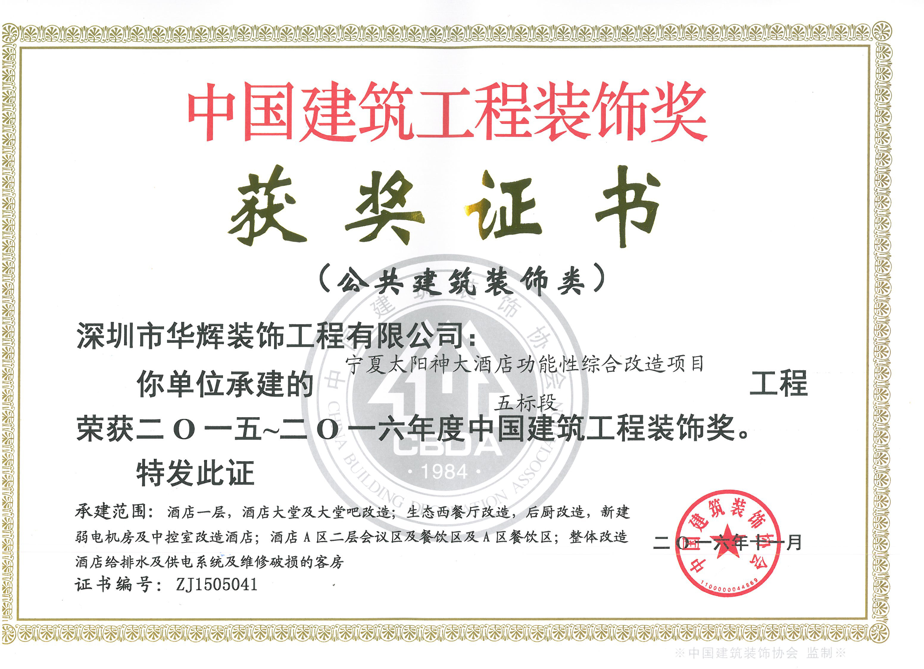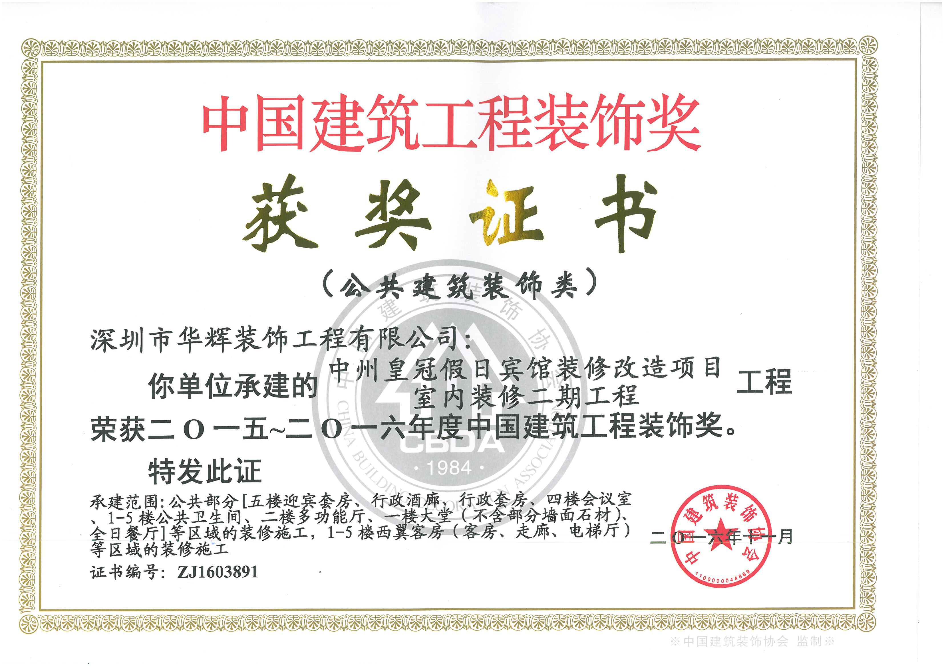 近日,由中國建筑裝飾協會舉辦的“2015~2016年度中國建筑工程裝飾獎”評選活動圓滿結束!深圳華輝裝飾7項工程喜獲“2015~2016年度中國建筑工程裝飾獎”